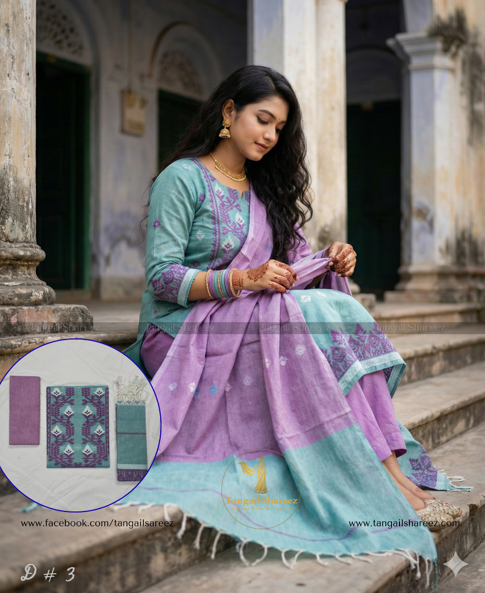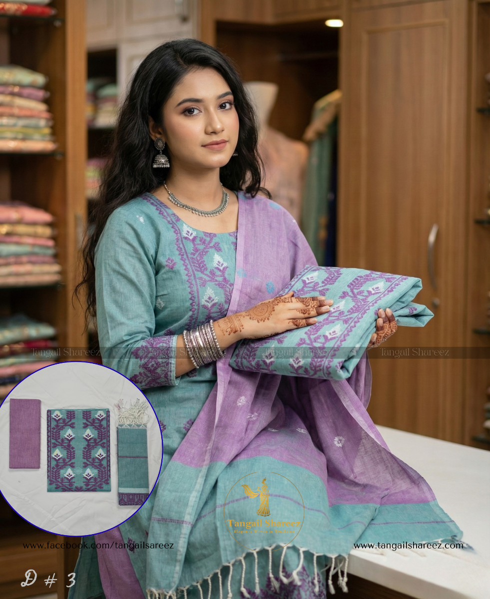 Premium Cotton Jamdani Three Piece (Unstitched)