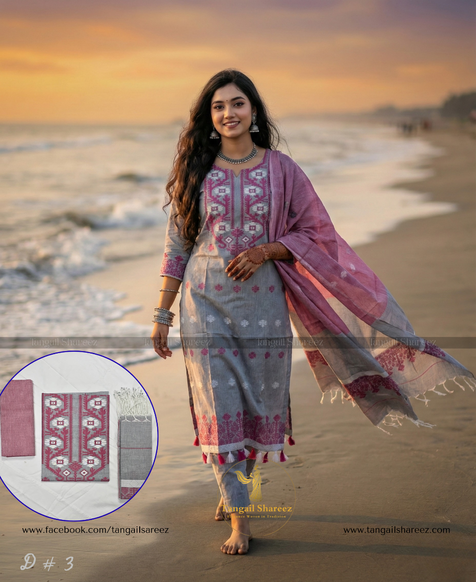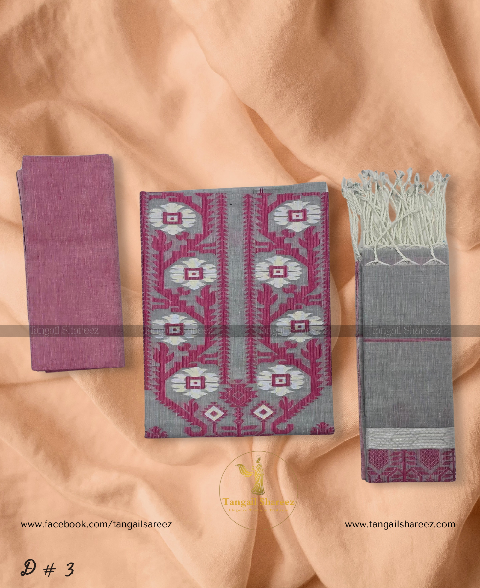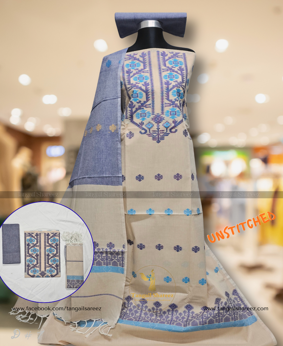 Premium Cotton Jamdani Three Piece (Unstitched)