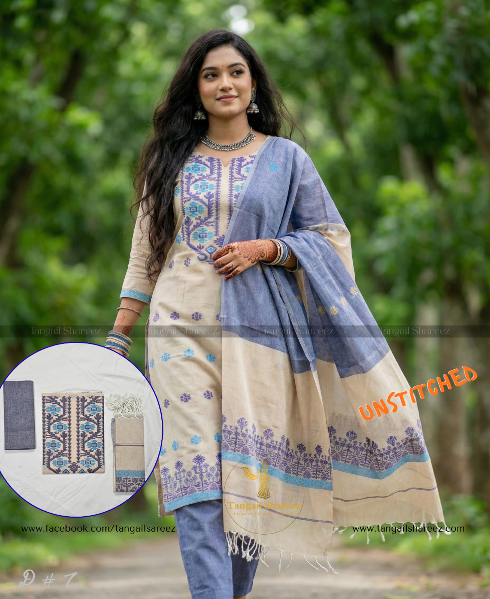 Jamdani Three Piece ( Unstitched ) D # 7